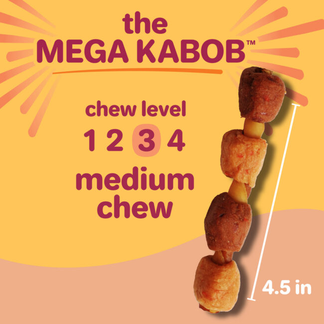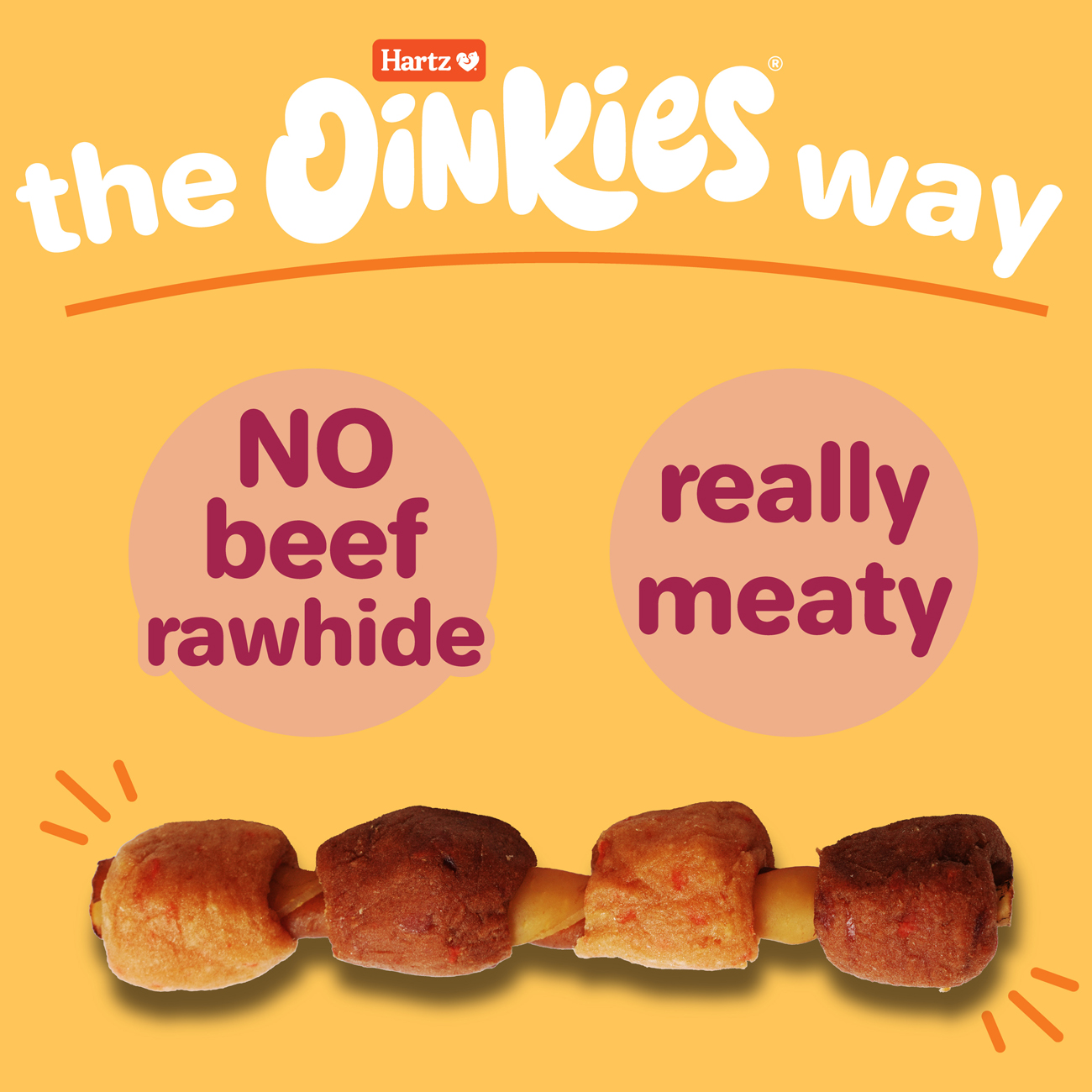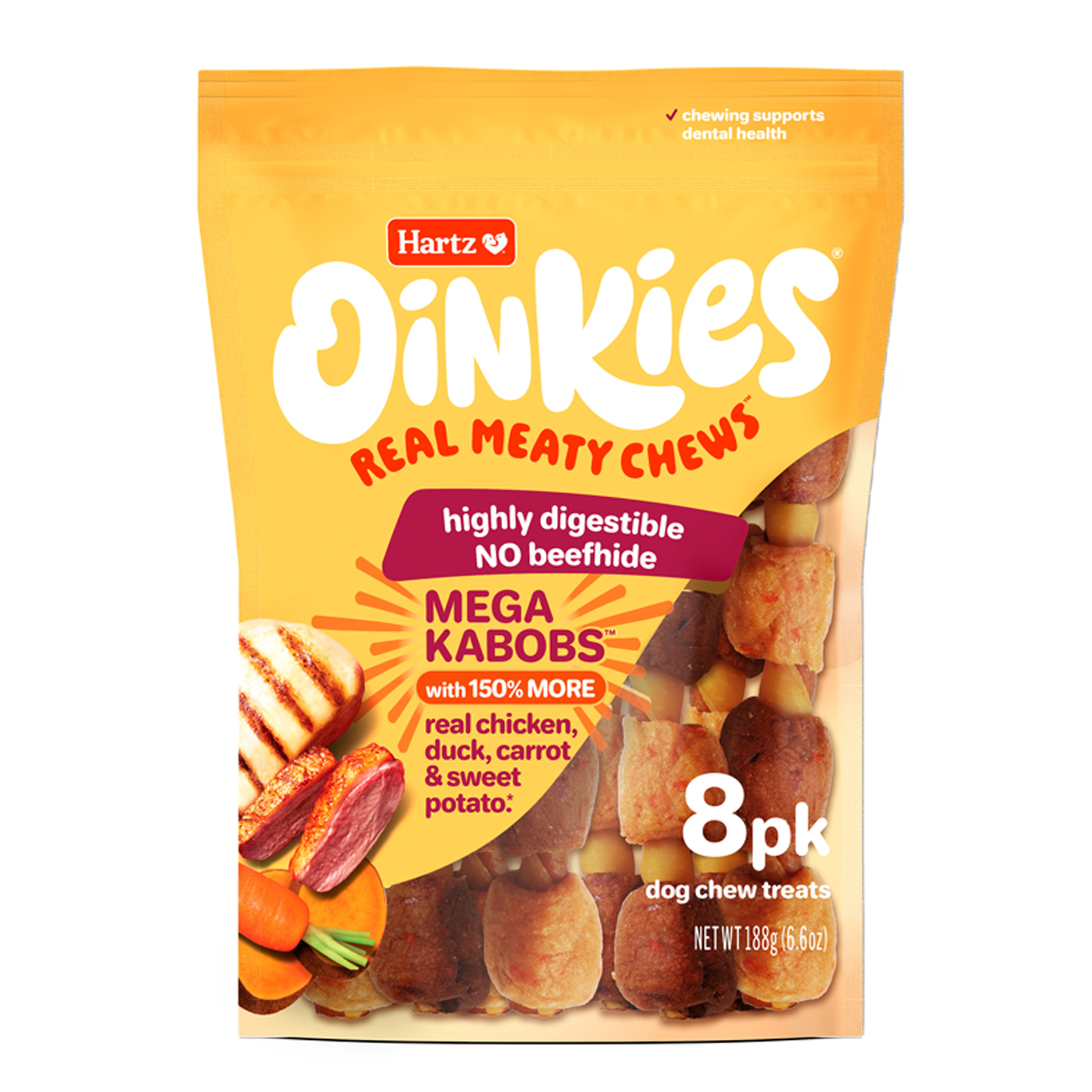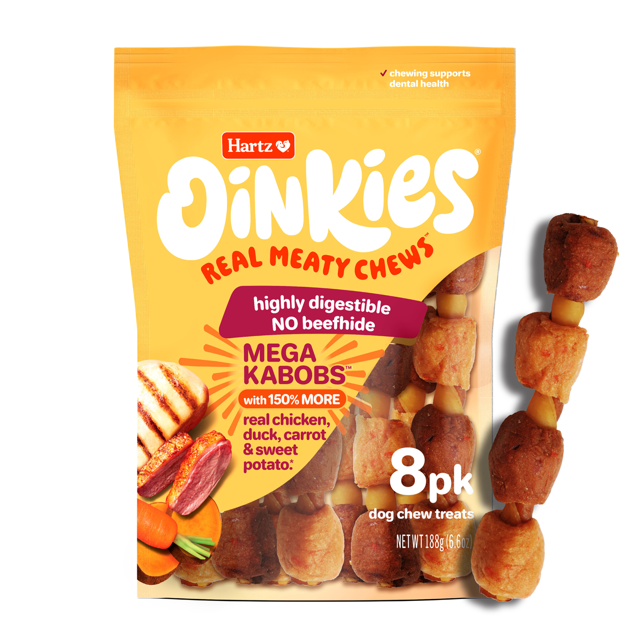 These dog chews are made without any beefhide or beef rawhide, so they’re highly digestible for easier digestion. The satisfying chewy texture entices chewing to help support good dental health. Treat your pup with flavorful real ingredients with Oinkies® Mega Kabobs dog treats.