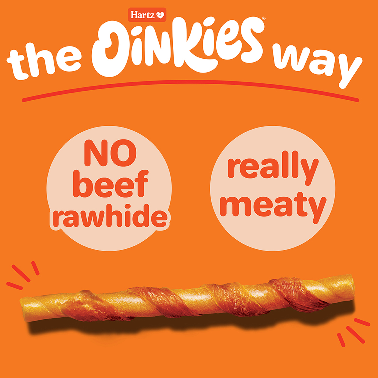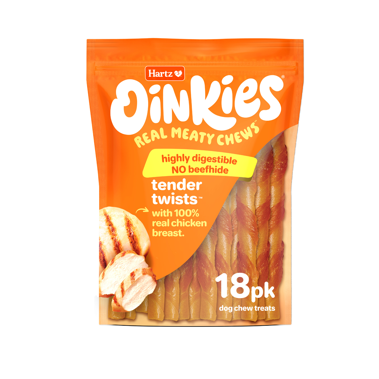 Keep your canine companion happy and occupied with Hartz Oinkies Real Meaty Chews Tender Treats, made with Real Chicken!
