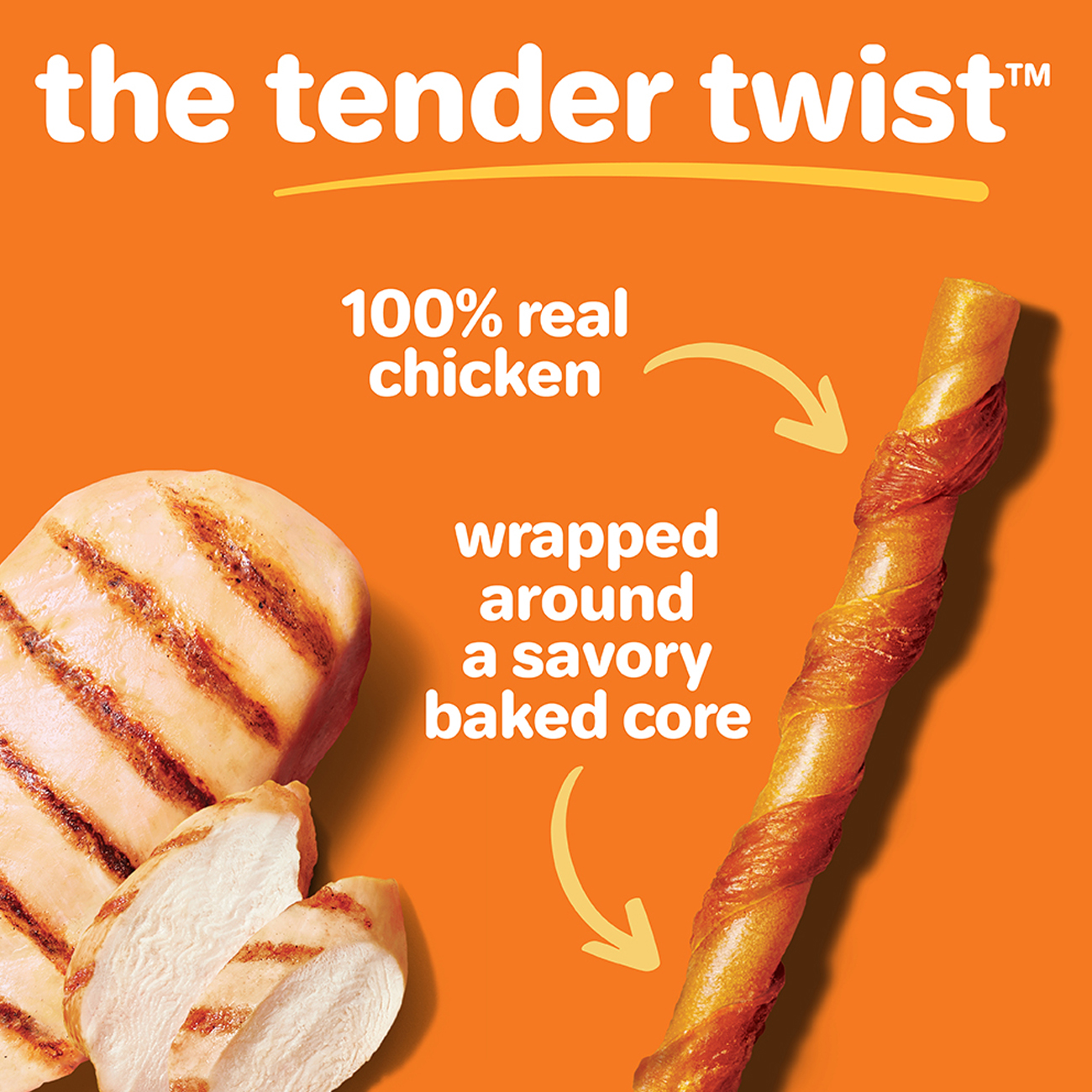 These irresistible, savory dog treats are made with a savory baked core, wrapped with 100% real chicken. And, since they’re made without any beef hide or rawhide, these chews are highly digestible. The chewy texture makes these dog chews a great choice for older dogs with sensitive teeth and smaller dogs with little mouths!